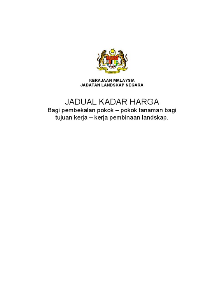 Jadual Kadar Harga Pokok Jabatan Landskap Negara Pdf